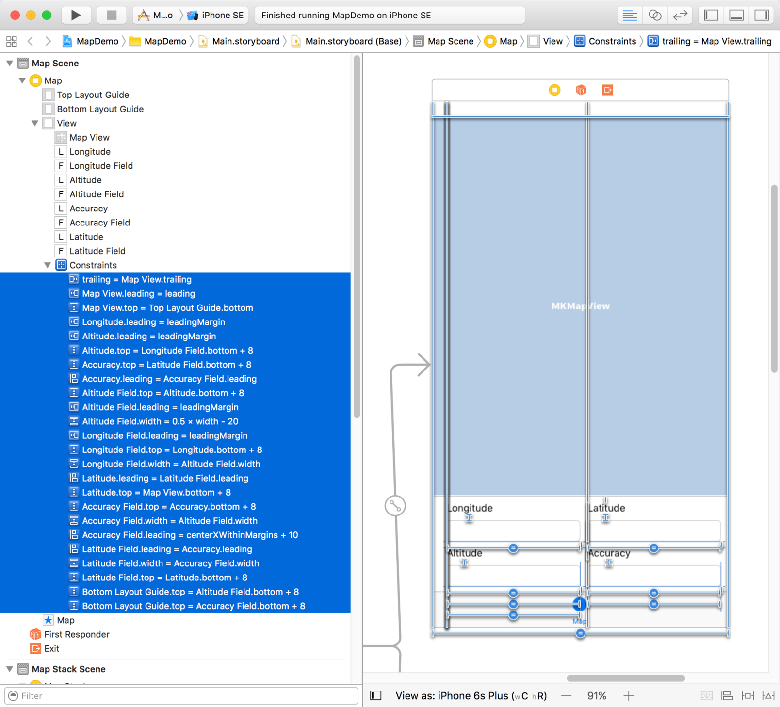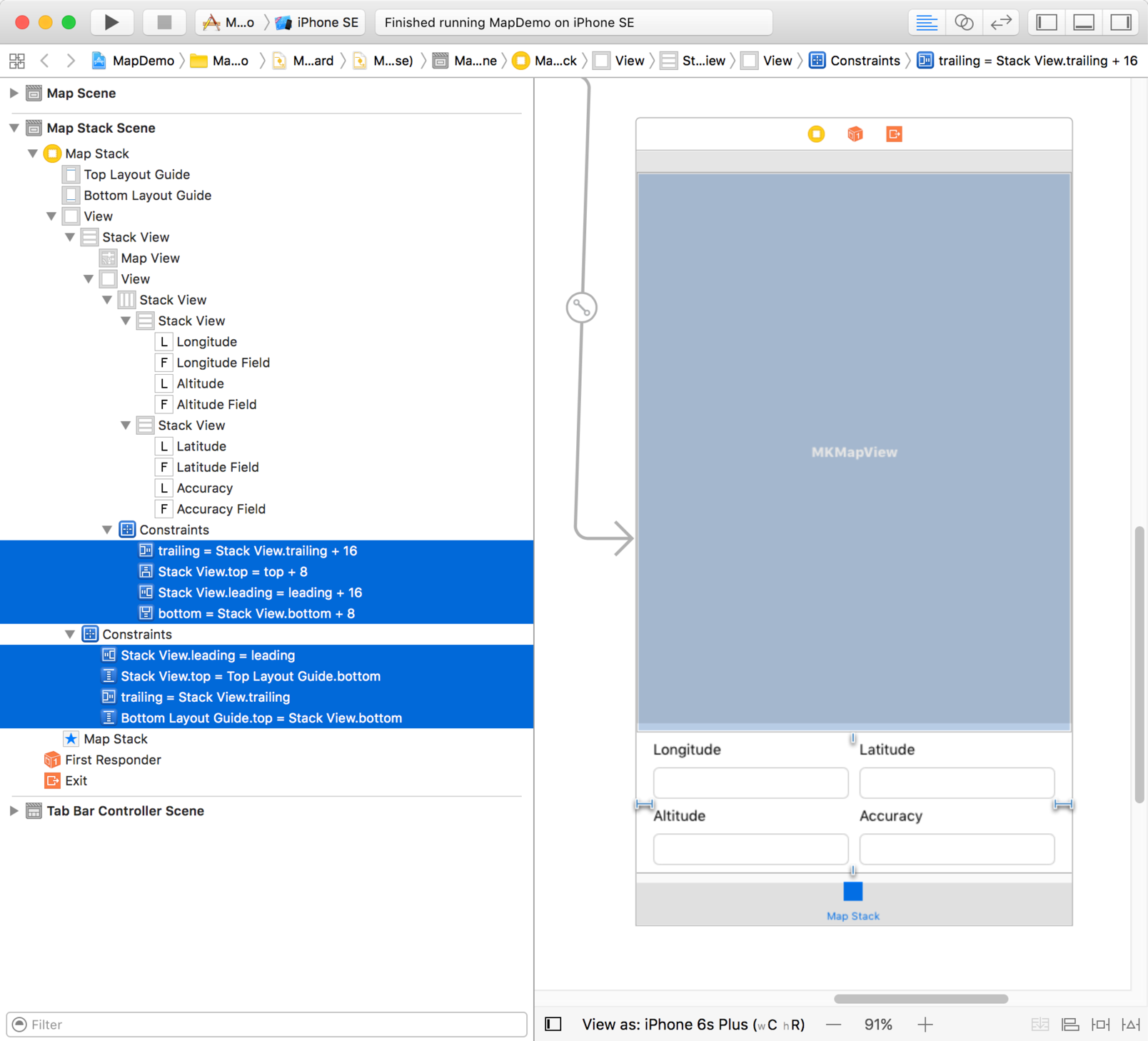 So let’s take a look at what UIStackView can do at the design stage. I implemented a simple demo app that displays a map view in the top part of the screen with location-related details below.