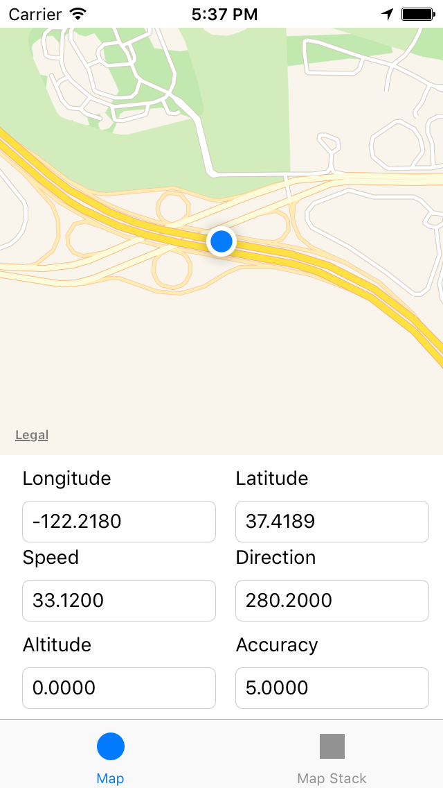 The UI above shows four details of the user’s current location, the latitude/longitude coordinate, the altitude, and the horizontal accuracy. Core Location also tells us the user’s current speed and direction. What if we want to add those? And what if we want to put the new information in the middle of the existing fields?